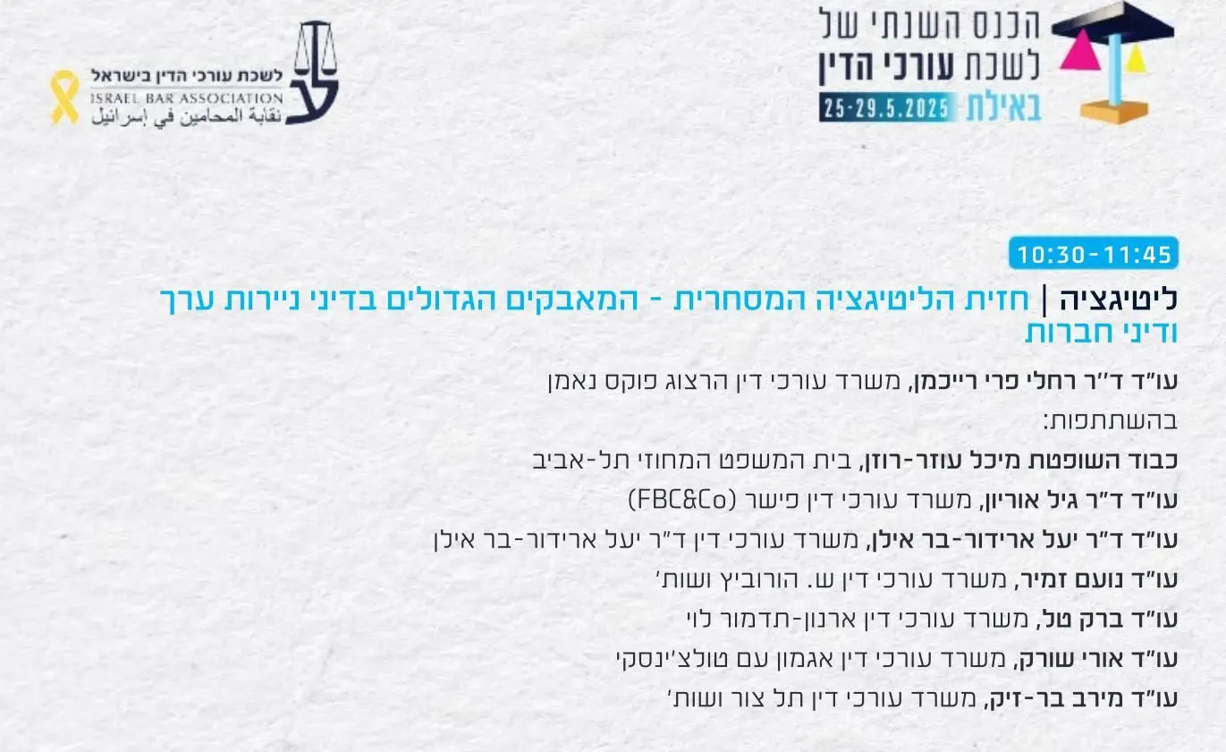 כנס לשכת עורכי הדין – מושב ליטיגציה מסחרית